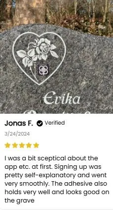 We offer a 10-year guarantee on our products. The QR code itself is laser engraved, so it won't wear off or wash away like others might. At most, the black may fade to dark grey after 10-15 years, but it will always stay readable. If a replacement is needed, we make it easy and very cost-effective, shipping the same QR code directly to your client or to you.